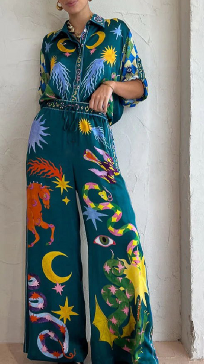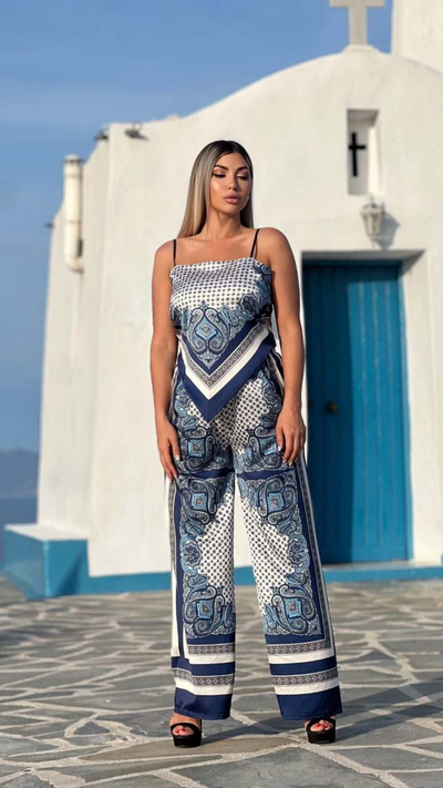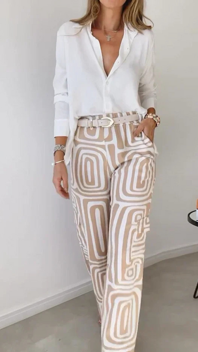 Conjunto Asimétrico con Flecos y Estampado Geométrico